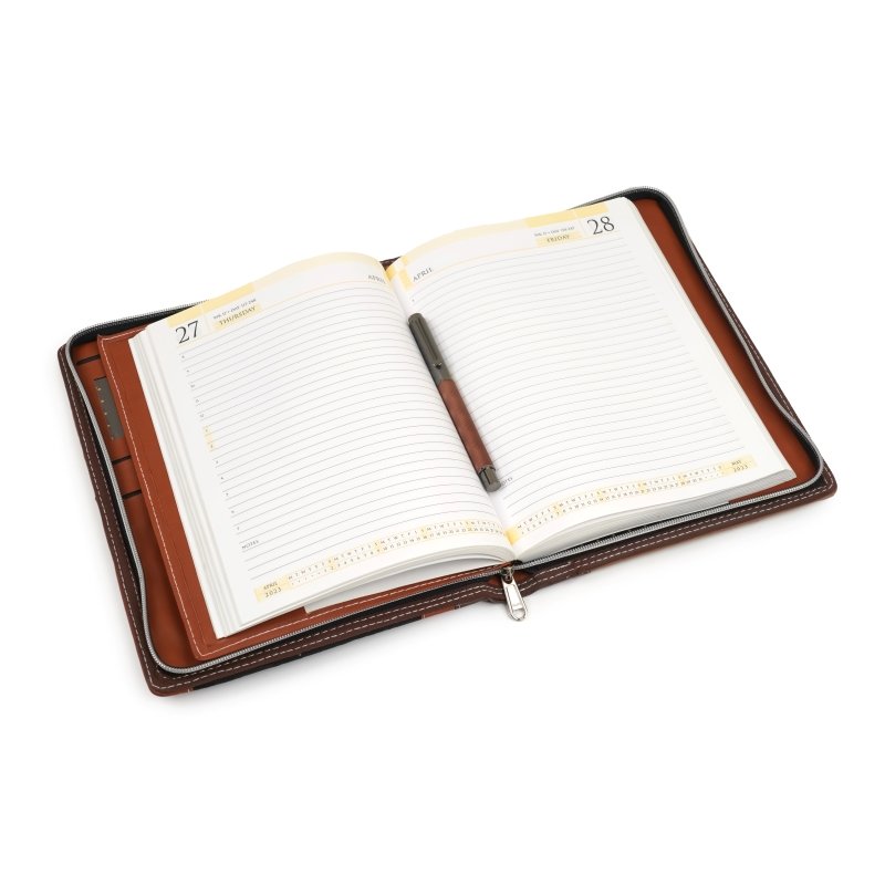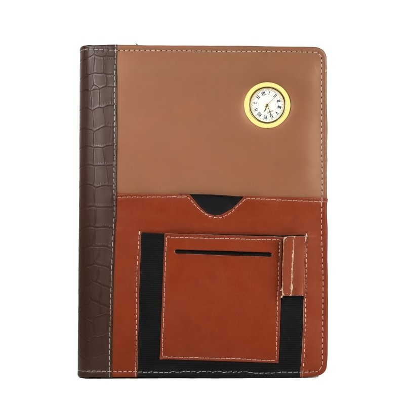 Personalized gift leather cover diary, clock, pen holder, pockets for bank card & documents upper side cover, January to December dated diary, and official nice looking, Customizable with name and logo. Perfect for any occasion. Corporate gift for office employess, boss and clients,