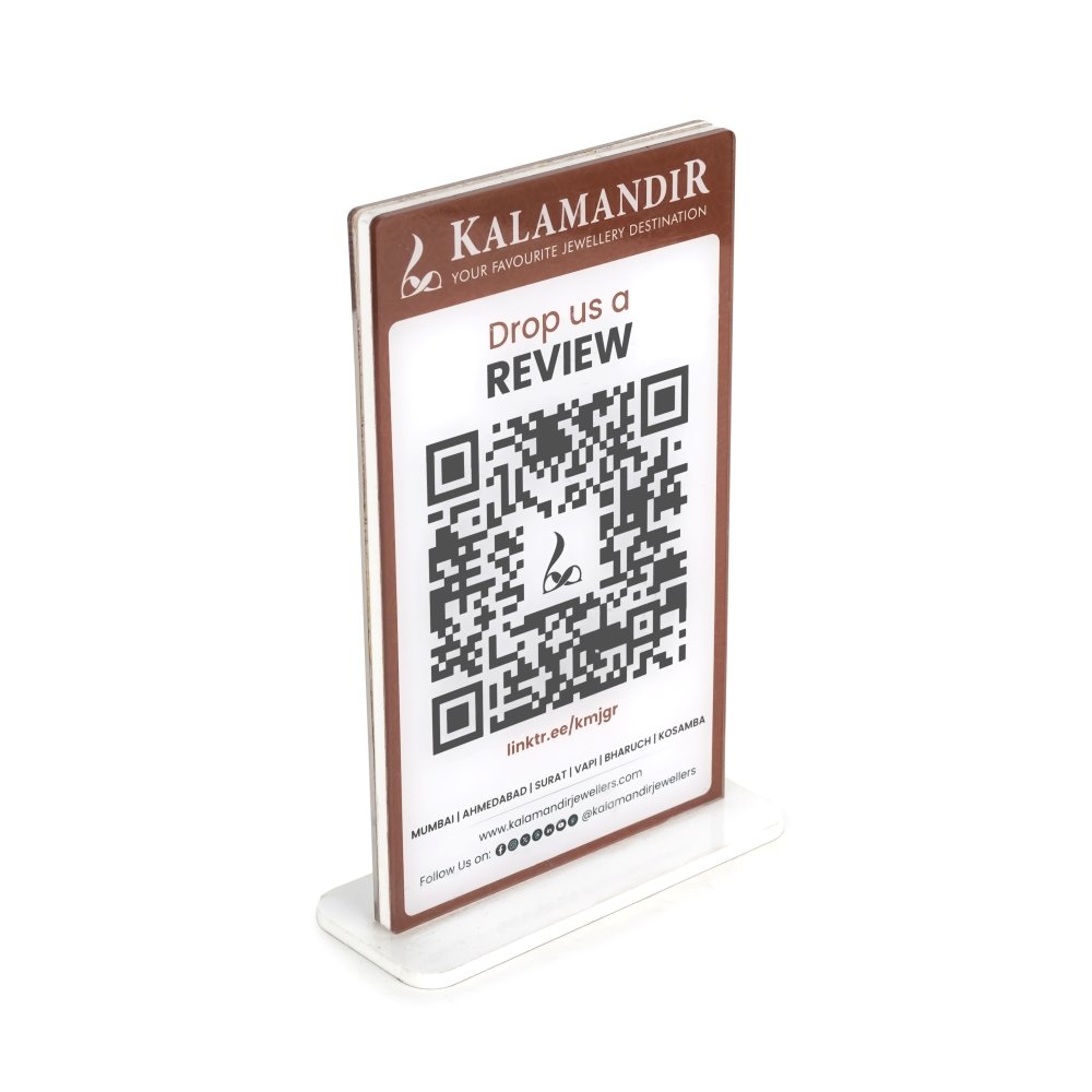 An acrylic QR code standee is a durable and visually appealing display solution that seamlessly bridges the physical and digital worlds for your customers. You can personalize these standees with your business name, logo, or tagline, alongside a custom QR code (or multiple QR codes for different platforms), directing customers to your website, social media, payment gateways, or feedback forms. This not only streamlines customer interaction and transactions but also enhances brand visibility and engagement.