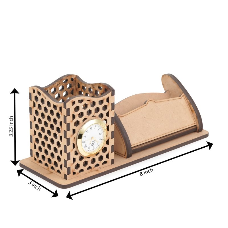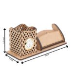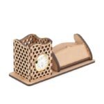A table pen stand with a clock offers a stylish and functional solution for organizing your workspace. It not only provides dedicated compartments to keep your pens and stationery organized but also helps you stay on schedule with a built-in clock.