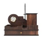 This multi-functional desk organizer offers a convenient way to keep your pens and pencils neatly stored while also providing a clock for time-keeping and a calendar for easy date reference. Its elegant design, often featuring a wooden construction, adds a touch of style and functionality to any desk or workspace, promoting organization and productivity.