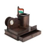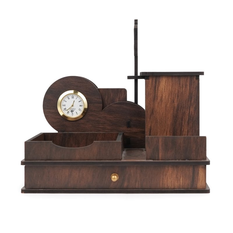 A table pen stand with a clock offers a stylish and functional solution for organizing your workspace. It not only provides dedicated compartments to keep your pens and stationery organized but also helps you stay on schedule with a built-in clock.