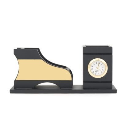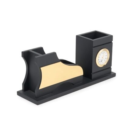 A table pen stand provides a convenient and organized way to store pens, pencils, and other small stationery items on a desk. Its compact design helps declutter your workspace while keeping essential writing tools readily accessible. A nice looking corporate official wooden products.