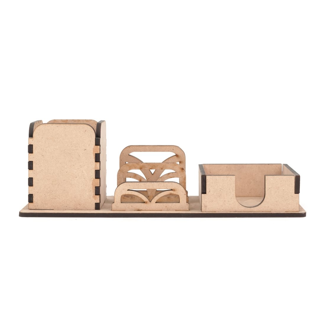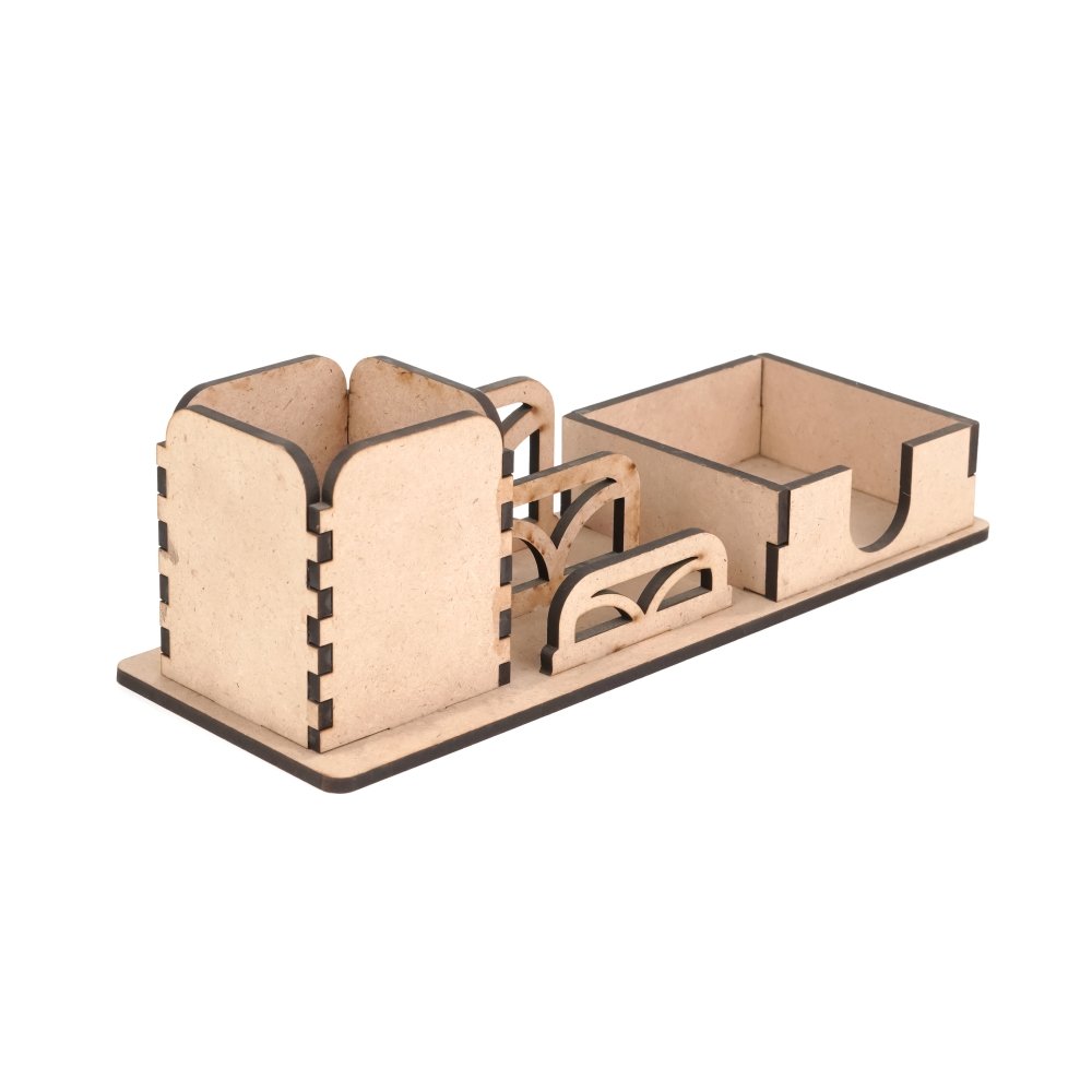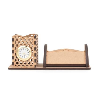 A table pen stand provides a convenient and organized way to store pens, pencils, and other small stationery items on a desk. Its compact design helps declutter your workspace while keeping essential writing tools readily accessible. A nice looking corporate official wooden products.