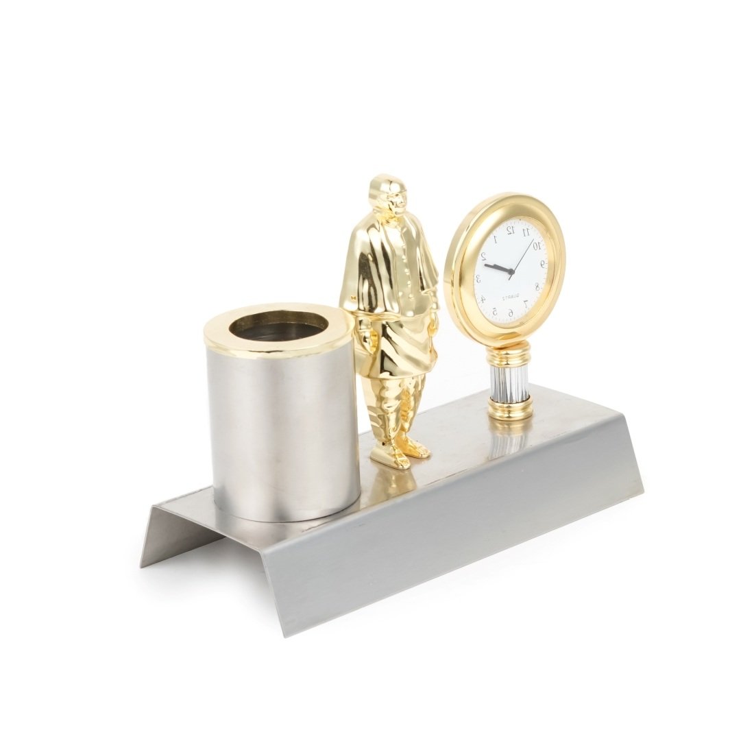 A table pen stand with a clock offers a stylish and functional solution for organizing your workspace. It not only provides dedicated compartments to keep your pens and stationery organized but also helps you stay on schedule with a built-in clock.