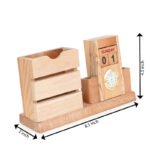 This multi-functional desk organizer offers a convenient way to keep your pens and pencils neatly stored while also providing a clock for time-keeping and a calendar for easy date reference. Its elegant design, often featuring a wooden construction, adds a touch of style and functionality to any desk or workspace, promoting organization and productivity.