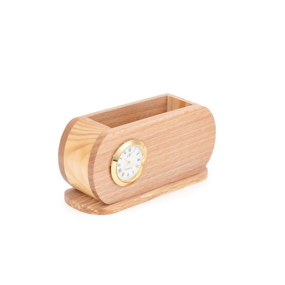 A table pen stand with a clock offers a stylish and functional solution for organizing your workspace. It not only provides dedicated compartments to keep your pens and stationery organized but also helps you stay on schedule with a built-in clock.