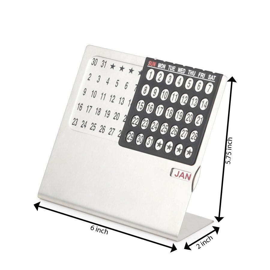 This elegant, lifetime manual metal calendar provides a durable and stylish solution for tracking dates on your office desk. Its perpetual design eliminates the need for yearly replacements, making it a sustainable and cost-effective choice for any workspace.