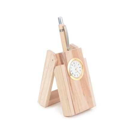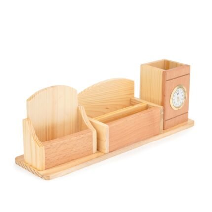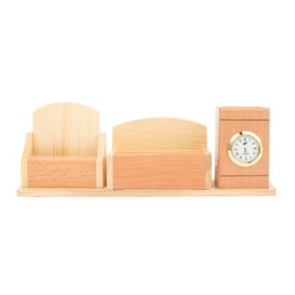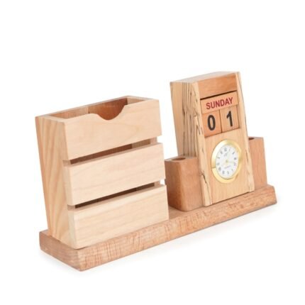 This multi-functional desk organizer offers a convenient way to keep your pens and pencils neatly stored while also providing a clock for time-keeping and a calendar for easy date reference. Its elegant design, often featuring a wooden construction, adds a touch of style and functionality to any desk or workspace, promoting organization and productivity.